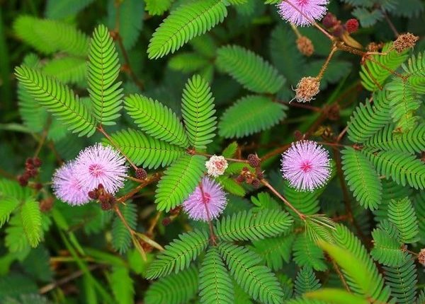 3. تیسرا درخت ہے چھوئی موئی جسے سائنسی زبان میں Mimosa pudica کہتے ہیں۔ بارش سے قبل اس کے پتے خودبخود بند ہو سکتے ہیں (یہ ردعمل نمی اور روشنی میں تبدیلی پر ظاہر ہوتا ہے)۔