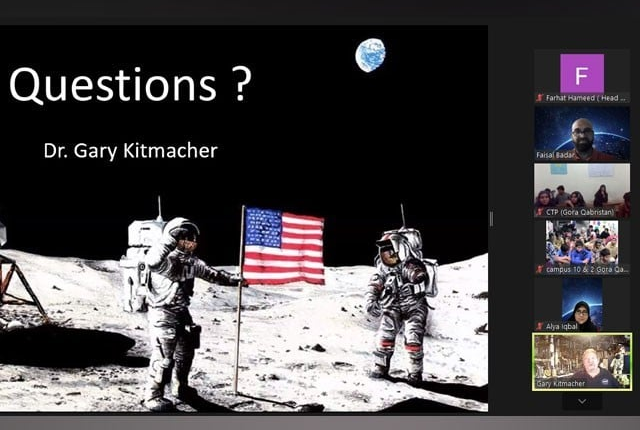 ایرو اسپیس ٹیکنولوجسٹ ڈاکٹر گیری نے امریکا سے آن لائن ناسا کا لائیو سیشن دیتے ہوئے اپنے خلائی تجربات طلبا سے شیئر کیے، اسپیکر نے ناسا کے سفر کا آغاز یعنی 1960 سے طلبا کو آگاہی دی کہ کیسے لوگ چاند پر گئے ، اسپیس کا رہن سہن ، راکٹس اور کھانے پینے کے تجربات شئیر کیے، سیشن میں ایلون مسلک کا ناسا سے اشتراک کے بعد چار لوگوں کو دوبارہ چاند پر بھیجنے کا ارادہ ظاہر کیا گیا جو 1 ماہ گزار کر آئیں گے۔