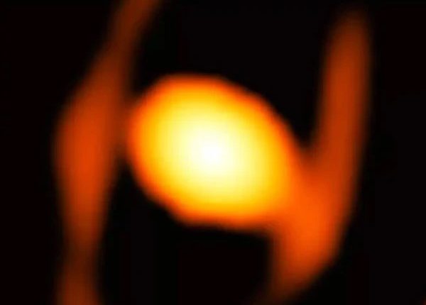 یہ تصویر محققین کی ایک ٹیم نے چلی میں یورپی سدرن آبزرویٹری کی بہت بڑی ٹیلی سکوپ کے ایک نئے آلے کا استعمال کرتے ہوئے حاصل کی۔تصویر میں روشن دھندلا پیلا ستارہ دکھایا گیا ہے جو بیضوی خاکہ کے اندر بند ہے۔