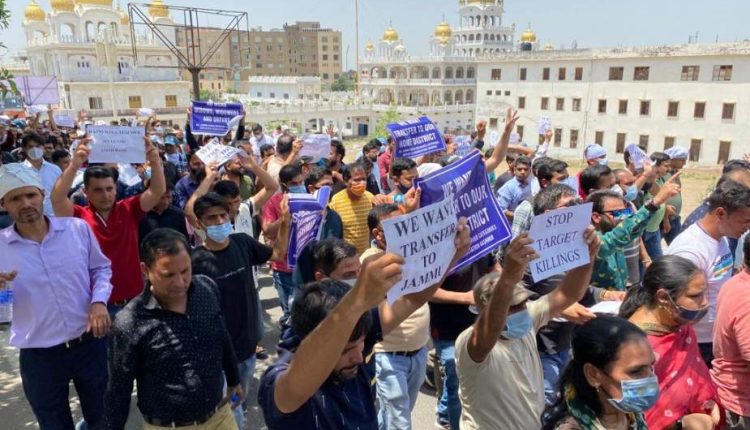 کشمیری پنڈت ملازمین کا جموں میں احتجاج، کشمیر سے تبدیل کرنے کا مطالبہ