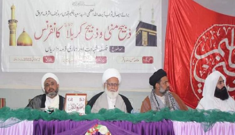 ادارہ منہاج الحسین ؑجوہر ٹاؤن لاہور کے زیر اہتمام "ذبیح منی و کربلا (علیھما السلام) کانفرنس” منعقد ہوئی، جس میں مختلف مسالک کے جید علماء کرام و مشائخ عظام نے ’’فلسفہ شہادت اور ہماری ذمہ داریاں‘‘ کے عنوان سے اظہار خیال کیا۔ اس موقع پر آیت اللہ محسن الحکیمؒ، آیت اللہ سعید الحکیمؒ سمیت حکیم خاندان کے دیگر علماء و فقہاء کو خراج تحسین پیش کیا گیا۔ حوزہ علمیہ نجف اشرف عراق سے علماء کرام کا تین رکنی خصوصی وفد شریک ہوا۔ کانفرنس سے علامہ ڈاکٹر محمد حسین اکبر سرپرست اعلی ادارہ منہاج الحسین لاہور، علامہ شیخ ساجد رضا خان، علامہ عقیل اختر ترابی، علامہ نسیم عباس کاظمی، علامہ حسن رضا باقر، علامہ رائے ظفر علی، علامہ غلام مصطفیٰ نیئر علوی، علامہ رشید ترابی، علامہ حافظ کاظم رضا نقوی، مفتی شبیر انجم مدنی، پیر وقاص منور مجددی، محمد حسین گولڑوی، بیرسٹر معصومہ بخاری، فیاض گوندل ایڈووکیٹ سمیت مختلف طبقہ ہائے فکر کے جید علماء اور دانشور حضرات نے خطاب کیا۔