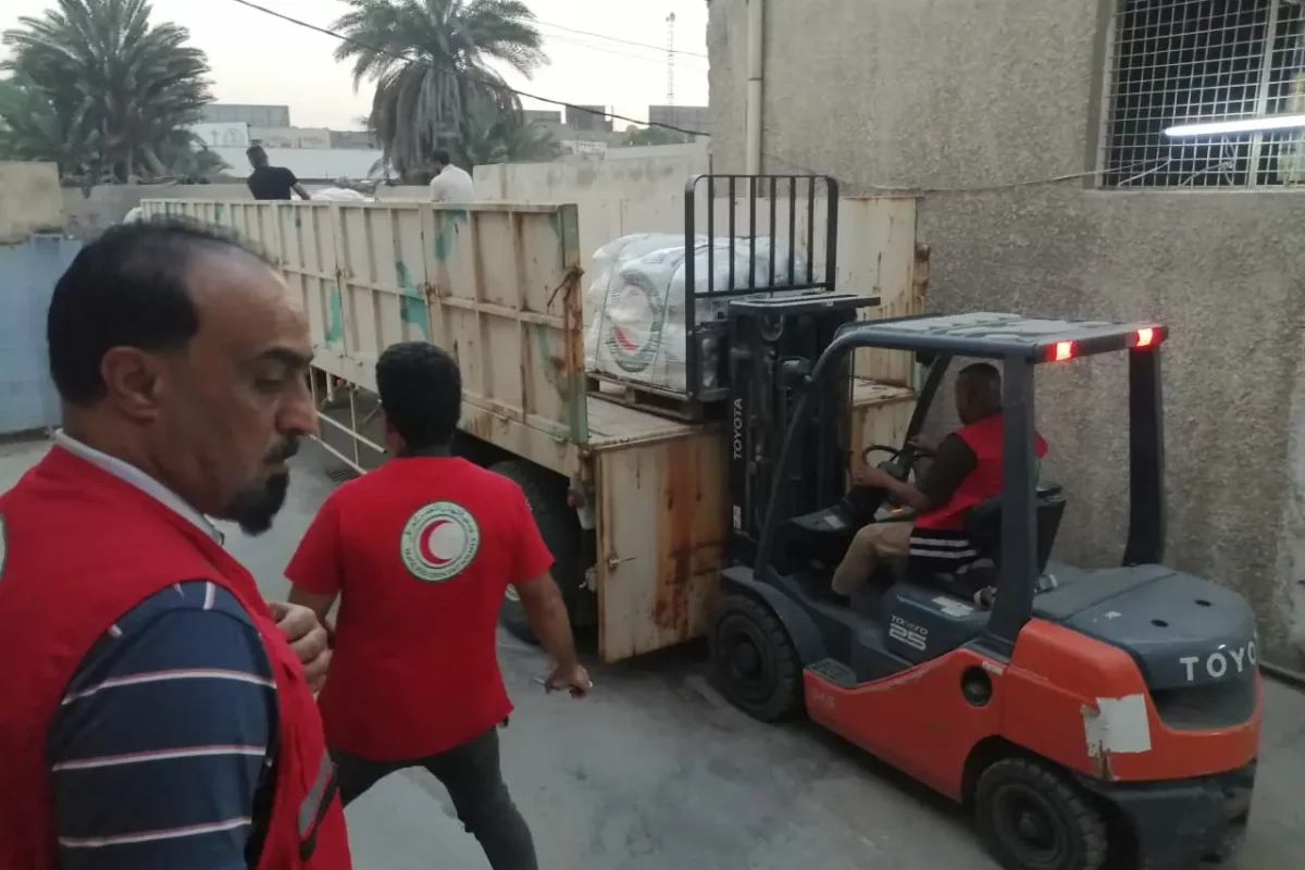 ایسوسی ایشن نے ایک بیان میں بتایا کہ عراقی ہلال احمر نے 32 ٹن سے زیادہ خوراک کی امداد کی پہلی کھیپ بغداد ہوائی اڈے پر منتقل کردی ہے تاکہ اسے عراقی ہوائی جہاز کے ذریعے ہوائی جہاز کے ذریعے جمہوریہ مصر کو پہنچایا جا سکے یہ امداد فلسطینی بھائیوں کیلئے بھجوائی گئی ہے۔ فلسطینی ہلال احمر” بیان میں مزید کہا گیا کہ ’’یہ مہم (القصیٰ کے لیے عراقی خوف) کے عنوان سے چلائی جارہی ہے۔