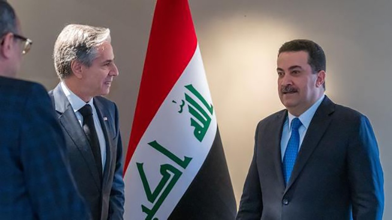 امریکی وزیر خارجہ بلنکن نے عراقی عوام کے شدید احتجاج کے درمیان عراقی وزیراعظم سے ملاقات کی غرض سے اتوار کے روز بغداد کا مختصر دورہ کیا۔