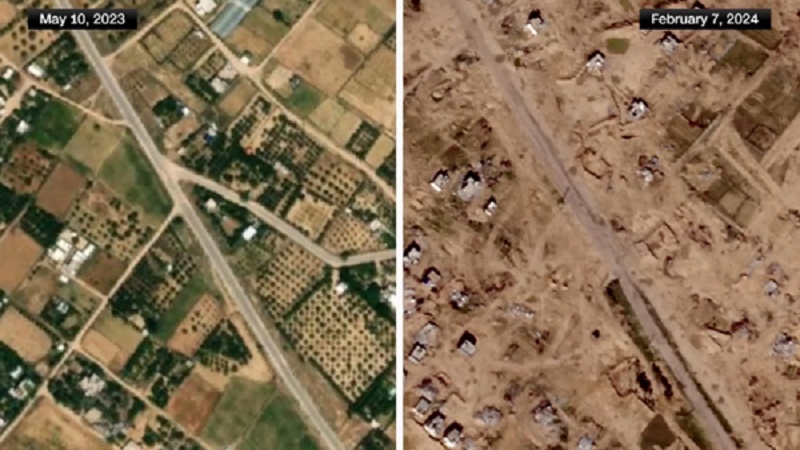 فارس نیوز کے مطابق اوہائیو اسٹیٹ یونیورسٹی کے جغرافیہ کے پروفیسر ہے ین نے غزہ میں زرعی اراضی کے نقصان کے بارے میں سی این این کو بتایا کہ ہم سیٹلائٹ کی تصاویر اور ڈیٹا میں جو کچھ دیکھ رہے ہیں وہ واقعی ایک تباہ کن مسئلہ ہے۔
