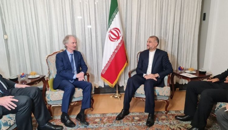 جاء ذلك في تصريح لوزير الخارجية الايراني حسين امير عبداللهيان خلال لقائه مع الممثل الخاص للأمين العام للأمم المتحدة للشؤون السورية غير بيدرسون، يوم الأربعاء، في جنيف بسويسرا، حيث بحثا وتبادلا وجهات النظر حول آخر التطورات السياسية في سوريا وسبل المساعدة في حلها.