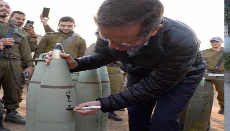 ‘هرتسوغ’ يدعم جنود الاحتياط بتدوينه عبارة على صاروخ مُعد لقصف غزة