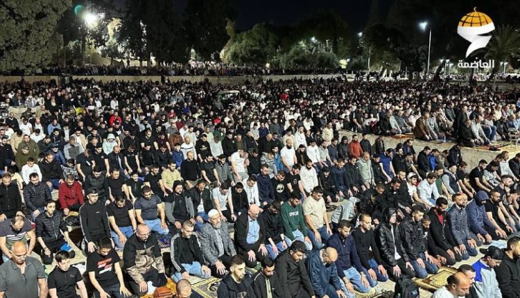 الآلاف يؤدون صلاتي العشاء والتراويح في المسجد الأقصى