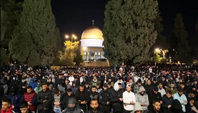 وكان آلاف المصلين والمعتكفين رددوا هتافات منددة بالعدوان الإسرائيلي على غزة قبل أن يعتدي الاحتلال عليهم.