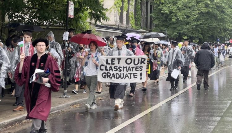 كما غادر المئات من طلبة جامعة شيكاغو حفل تخرجهم، لدعم الطلبة الذين تم حجب شهاداتهم نتيجة مشاركتهم في الاحتجاجات المؤيدة لفلسطين في الحرم الجامعي.