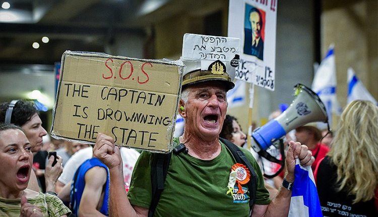 تظاهر مئات الإسرائيليين في مطار بن غوريون في “تل أبيب” للمطالبة بإبرام صفقة تبادل مع المقاومة الفلسطينية، حيث يغادر رئيس حكومة الاحتلال بنيامين نتنياهو، اليوم الاثنين، إلى واشنطن.