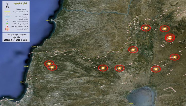 ولفت البيان الى ان “عدد صواريخ الكاتيوشا التي أطلقت حتى الان تجاوزت 320 صاروخا بإتجاه مواقع العدو “، واشارت الى ان “المواقع التي تم استهدافها وإصابتها بعون الله تعالى: 1- قاعدة ميرون، ‏2- مربض نافي زيف، ‏3- قاعدة زعتون، ‏4- مرابض الزاعورة، ‏5- قاعدة السهل، ‏6- ثكنة كيلع في الجولان السوري المحتل، ‏7- ثكنة يو أف في الجولان السوري المحتل، ‏8- قاعدة نفح في الجولان السوري المحتل، ‏9- قاعدة يردن في الجولان السوري المحتل، ‏10 – قاعدة عين زي تيم، ‏11- ثكنة راموت نفتالي”.