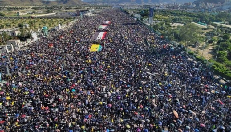 الحشود اليمنية تملأ الساحات في صعدة نصرة لغزة ولبنان