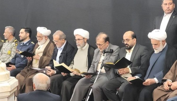 وشارك في هذه المراسم الرئيس الايراني مسعود بزشكيان ومساعد ومستشار قائد الثورة محمد مخبر ونائب قائد الحرس الثوري العميد علي فدوي ونائب شؤون التنسيق في فيلق القدس التابع للحرس الثوري العميد ايرج مسجدي ومجموعة من المسؤولين الآخرين وجمع من المواطنين.