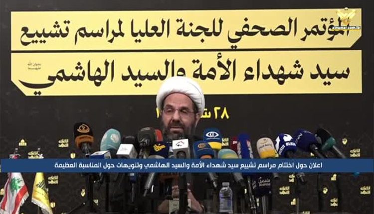 عقد نائب رئيس المجلس التنفيذي لحزب الله الشيخ علي دعموش الجمعة مؤتمرا صحافيا حول مراسم تشييع سيد شهداء الأمة السيد حسن نصر الله والسيد الهاشمي السيد هاشم صفي الدين.