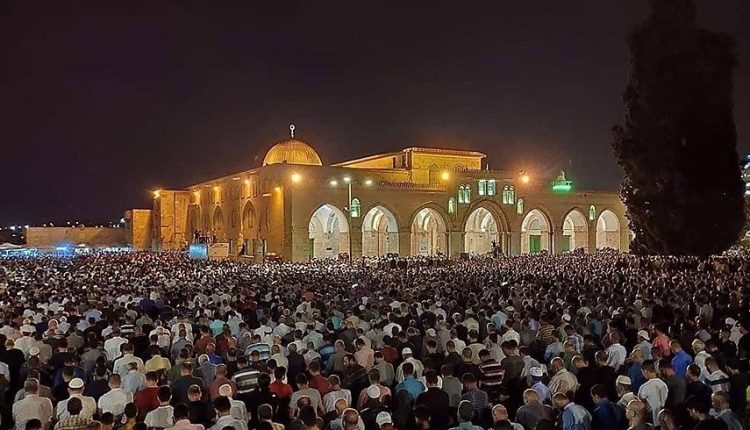 وأدى نحو 85 ألف مصلٍ صلاة العشاء والتراويح في المسجد الأقصى المبارك، في اليوم السادس من رمضان، متجاوزين عراقيل الاحتلال المفروضة على وصول الفلسطينيين إلى مدينة القدس.