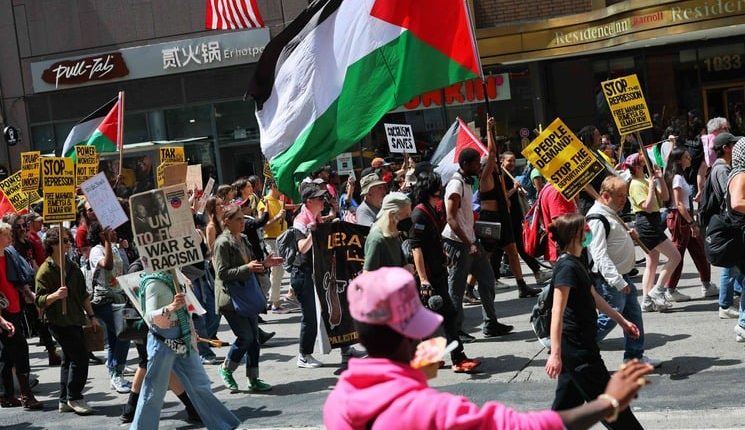 علم فلسطين يرفرف باحتجاجات عيد العمّال في أمريكا +صور