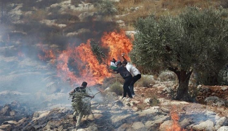 مستوطنون يحرقون مساحات زراعية واسعة بالضفة الغربية