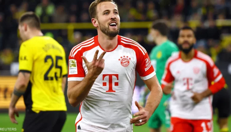 تألق هاري كين في أول مباراة قمة يخوضها مع بايرن ميونيخ إذ سجل ثلاثة أهداف ليقود فريقه للفوز 4-صفر على مضيفه بروسيا دورتموند بدوري الدرجة الأولى الألماني لكرة القدم يوم السبت ويرفع رصيده إلى 15 هدفا في عشر مباريات بالدوري.