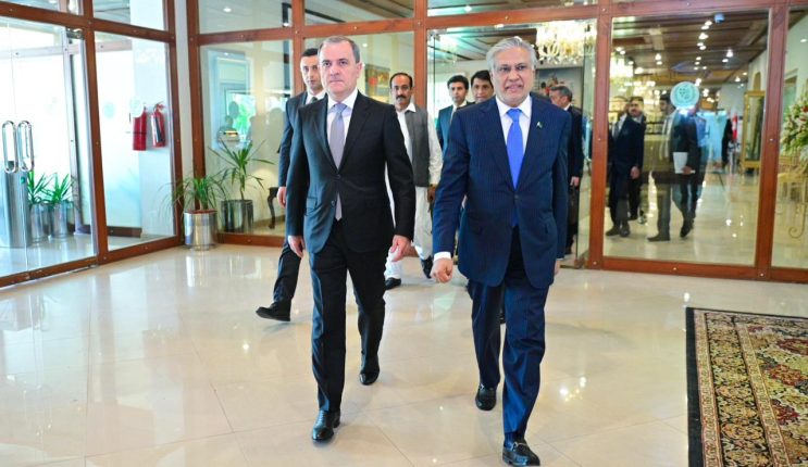 استقبل وزير خارجية باكستان ونائب رئيس الوزراء محمد اسحق دار وزير خارجية أذربيجان جيهون بايراموف الذي يزور البلد حاليا.