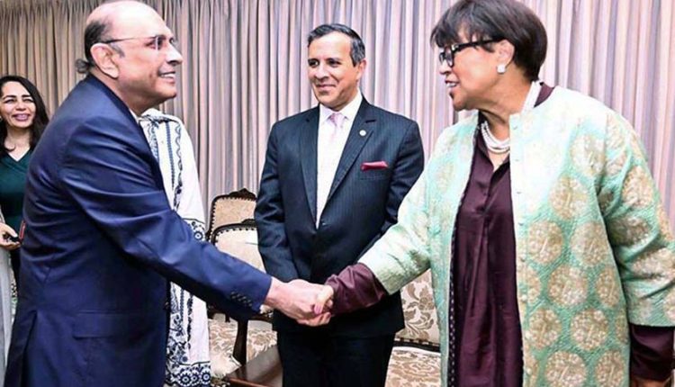التقى الرئيس الباكستاني آصف علي زرداري، الثلاثاء، باتريشيا سكوتلاند الأمينة العامة لمنظمة الكومنولث، التي تزور باكستان حاليا.