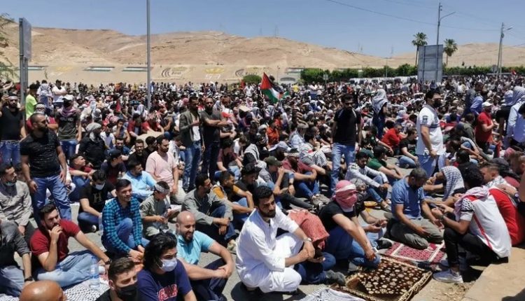 وتوافد أكثر من 10 آلاف شخص إلى وسط عمّان بالقرب من المسجد الحسيني الكبير، بناءً على دعوات من جماعة الإخوان المسلمين في الأردن، ومجموعات يسارية، وأخرى شبابية للتظاهر، وسط حضور أمني كثيف.