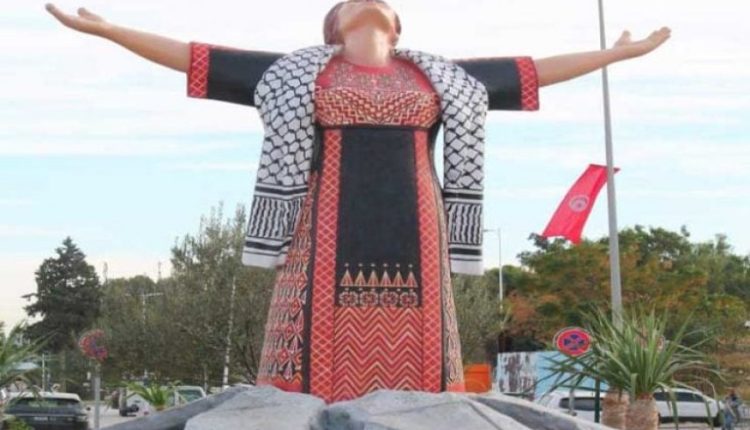 ويبلغ ارتفاع التمثال أربعة أمتار ونصف، وهو يحاكي الصلابة والتحدي والمقاومة التي يتحلى بها الشعب الفلسطيني الشقيق من خلال صورة الأم الفلسطينية (أم الشهداء) التي ظلت رافعة رأسها رغم القساوة والقهر وأبهرت العالم بصبرها وقوتها على الظلم الذي تجاوز طاقة تحمل البشر وهي تقوم بحركة تضرع إلى الله داعية للنصر على العدو الغاشم”، وفق وكالة الأنباء التونسية.