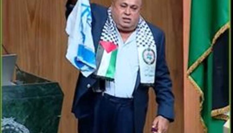 نائب أردني يحرق علم الاحتلال تحت قبة الجامعة العربية