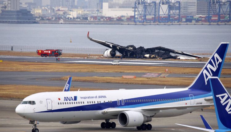 وقالت وسائل إعلام يابانية إن النيران اشتعلت في الطائرة نتيجة اصطدام جانب الركاب بطائرة تابعة لخفر السواحل الياباني.