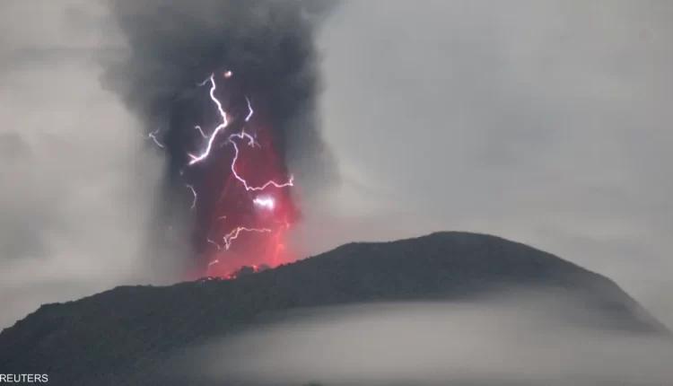 وثار بركان إيبو مساء السبت، وأرسل رمادا بارتفاع أربعة كيلومترات، مع ظهور خطوط من البرق الأرجواني حول فوهة البركان، وفقا للمعلومات والصور التي نشرتها وكالة علوم البراكين الإندونيسية.