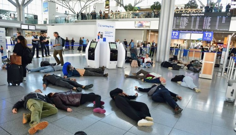 وقال المتحدث باسم المطار، روبرت فيلهلم، لوكالة الأنباء الألمانية (د.ب.أ) إن “الحركة الاحتجاجية التي نظمها نشطاء من مجموعة “الجيل الأخير” في المطار يوم السبت تسببت في إلغاء نحو 60 رحلة بشكل كامل”.