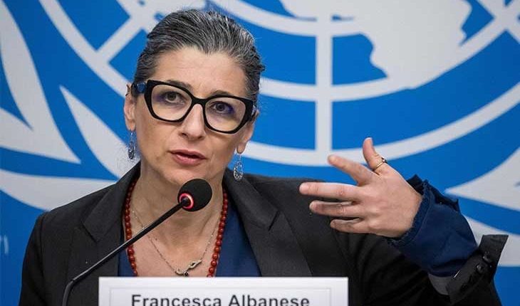 دعت المقررة الخاصة للأمم المتحدة المعنية بفلسطين فرانشيسكا ألبانيز، السبت، المجتمع الدولي إلى فرض عقوبات على “إسرائيل” وتعليق العلاقات الدبلوماسية معها، حتى تنصاع لقرار محكمة العدل الدولية.