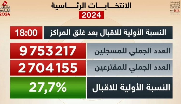 أكد رئيس الهيئة العليا المستقلة للانتخابات في تونس فاروق بوعسكر، أن عدد التونسيين الذين صوتوا في الانتخابات الرئاسية، بلغ مليونان و704 آلاف و155 ناخبا أي بنسبة 27.7 في المائة.
