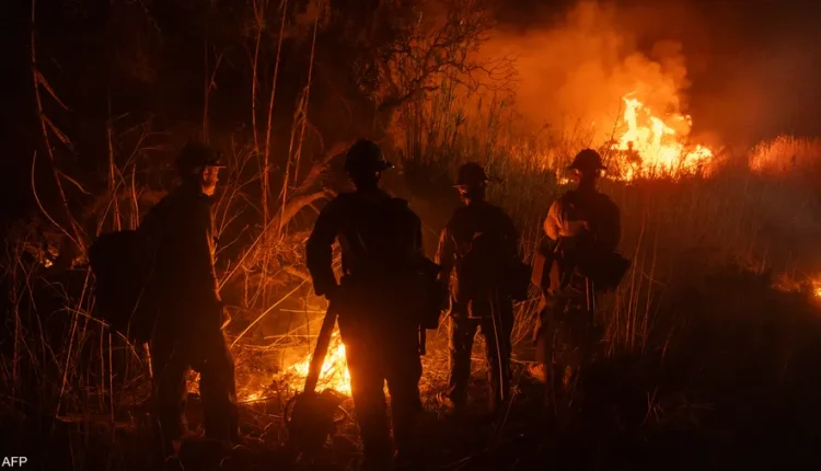 واجه رجال الإطفاء في لوس أنجلوس بولاية كاليفورنيا الأميركية رياحا قوية وجافة مما أدى إلى تأجيج حريقين هائلين.