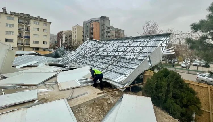عاصفة قوية تضرب مدينة تركية تقتلع المباني والاشجار!