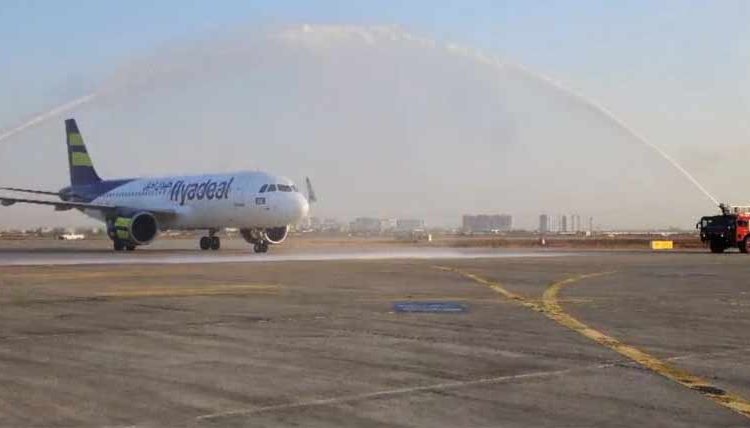 نئی ایئرلائن کی پہلی پرواز سعودی عرب سے کراچی پہنچ گئی، سعودی عرب کی نئی ایئرلائن کے طیارے کو کراچی ایئرپورٹ پر واٹر سلیوٹ دیا گیا۔