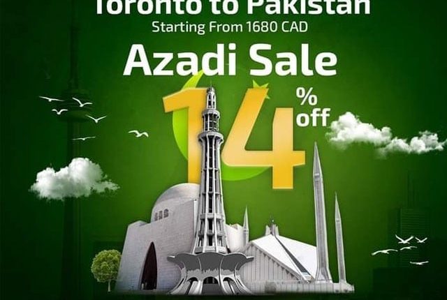 یوم آزادی پر پاکستان انٹرنیشنل ایئر لائنز نے ٹورنٹو ، کینیڈا سے پاکستان آنے والی پروازوں پر 14 فیصد کمی کردی۔