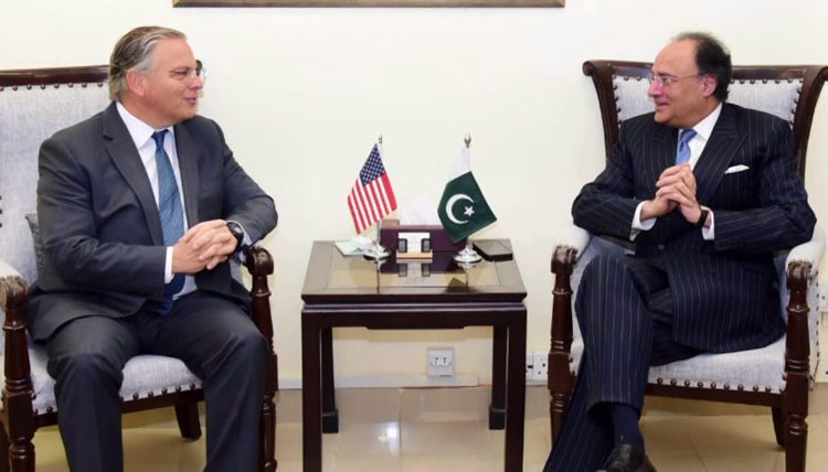اعلامیہ کے مطابق ملاقات میں دو طرفہ اقتصادی تعاون اور تعلقات سمیت باہمی دلچسپی کے امور پر تبادلہ خیال کیا گیا، وزیر خزانہ نے امریکی سفیر کو پاکستان کے معاشی نقطہ نظر کے بارے میں بتایا۔