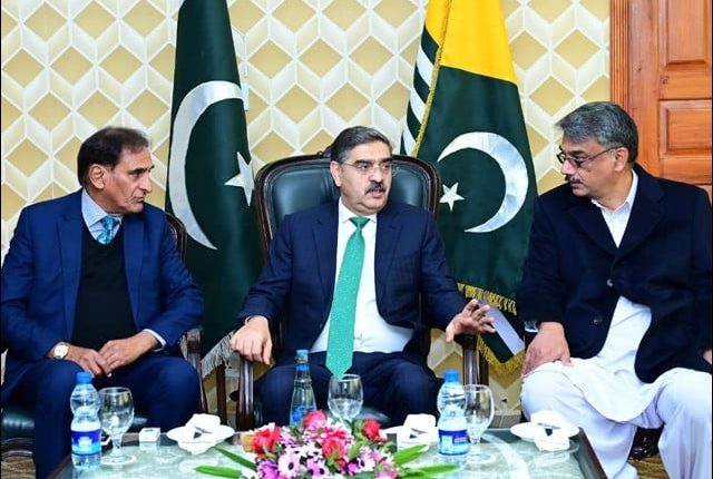 نگران وزیر اعظم انوار الحق کاکڑ یومِ یکجہتی کشمیر کے موقع پر مظفر آباد پہنچے، جہاں آزاد جموں و کشمیر قانون ساز اسمبلی کے اسپیکر چوہدری لطیف اکبر اور وزیرِ اعظم آزاد جموں و کشمیر چوہدری انوار الحق نے ان سے ملاقات کی۔