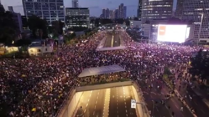 صیہونی حکومت کے وزیراعظم کے خلاف ہونے والے مظاہرے میں سات لاکھ سے زائد صیہونیوں نے شرکت کی جن میں صیہونی پارلیمنٹ کے بعض ارکان بھی شامل تھے۔