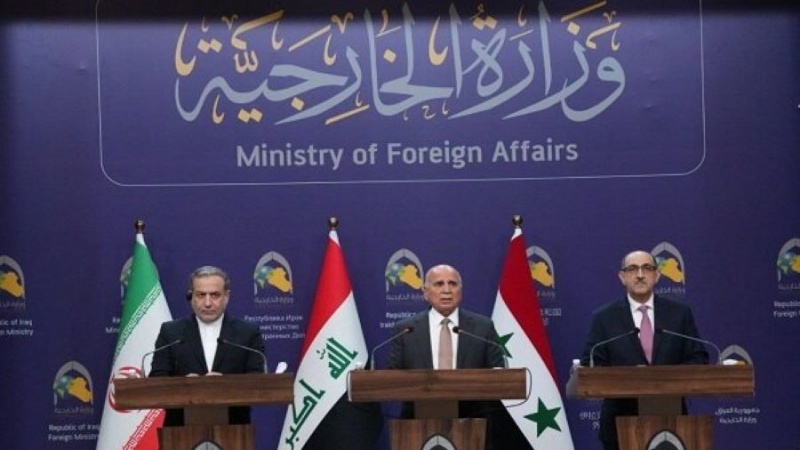 اسلامی جمہوریہ ایران، شام اور عراق، تینوں ملکوں کے وزرائے خارجہ کے مشترکہ بیان میں اس پورے خطے بالخصوص شام لاحق مسائل و مشکلات کی مناسب راہ حل تک پہنچنے کے لئے مشترکہ عرب،علاقائی اور بین الاقوامی کوششوں کی ضرورت پر زور دیا گیا ہے۔