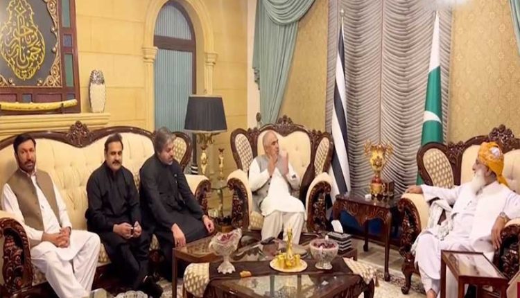 مولانا فضل الرحمان سے ملاقات میں اپوزیشن لیڈر عمر ایوب، اسد قیصر، سلمان اکرم راجا، صاحبزادہ حامد رضا، شہرام خان ترکئی اور اخونزادہ حسین شامل تھے۔