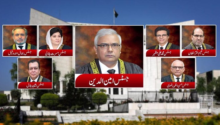 جسٹس امین الدین خان کی سربراہی میں 7 رکنی آئینی بنچ کیس کی سماعت کر رہا ہے۔