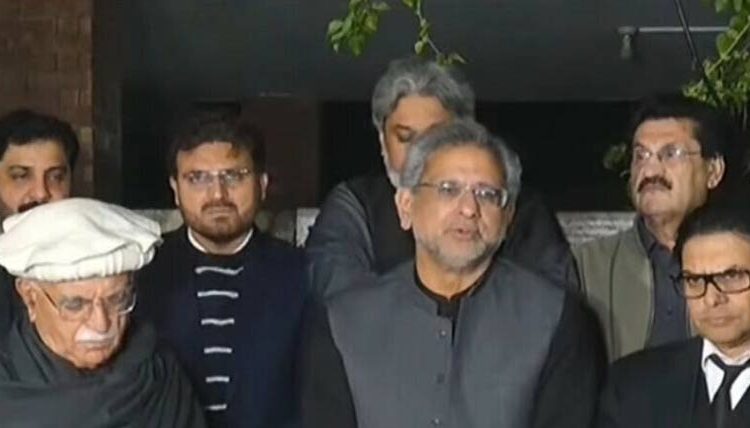 سربراہ عوام پاکستان پارٹی شاہد خاقان عباسی کا کہنا تھا کہ ہم آئین کی بالادستی کی بات کررہے ہیں، ملک میں ایسی حکومت ہے جو عوام کی نمائندہ نہیں، یہ حکمران عوام کی رائے سے گھبراتے ہیں۔