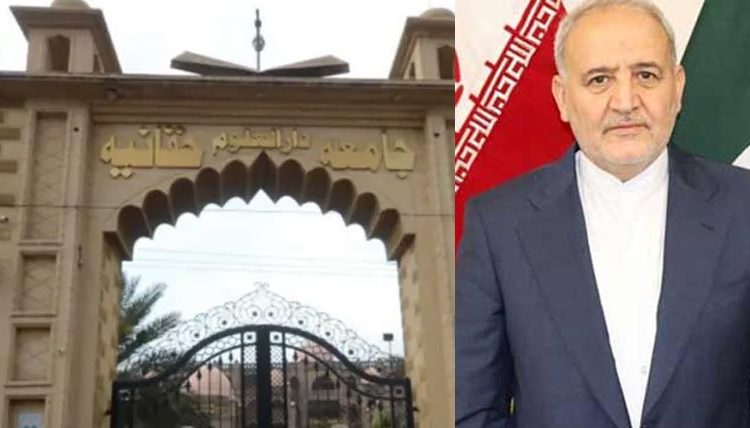 پاکستان میں ایران کے سفیر ڈاکٹر رضا امیری مقدم کی دارالعلوم حقانیہ اکوڑہ خٹک آمد، مولانا حامد الحق کی شہادت پر دلی افسوس اور دکھ کا اظہار کیا۔