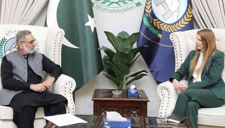 سپیکر خیبر پختونخوا اسمبلی بابر سلیم سواتی نے برطانوی ہائی کمشنر جین میریٹ کو اسمبلی کی یادگاری شیلڈ پیش کی۔
