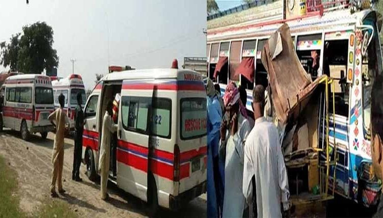 جڑانوالہ میں مسافر بس کی لوڈر رکشہ کو ٹکر کے نتیجے میں رکشہ میں سوار 11 افراد جاں بحق ہوگئے۔