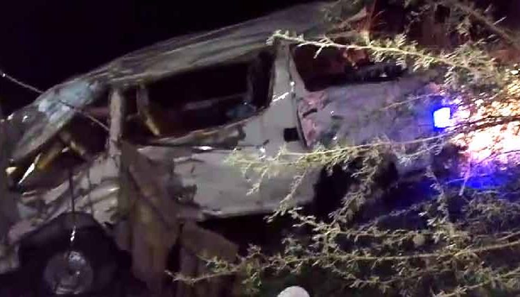 لاڑکانہ خیرپور پل پر تیز رفتاری کے باعث وین الٹ گئی، وین الٹنے سے 3 افراد جاں بحق جبکہ 11 زخمی ہوگئے۔