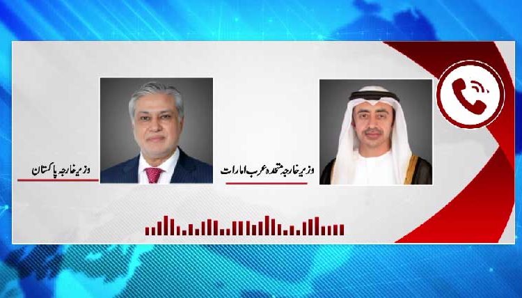 پاک بھارت کشیدگی بارے وزیر خارجہ اسحاق ڈار نے متحدہ عرب امارات کے وزیر خارجہ سے رابطہ کیا اور خطے کی صورتحال اور باہمی دلچسپی کے امور پر تبادلہ خیال کیا۔