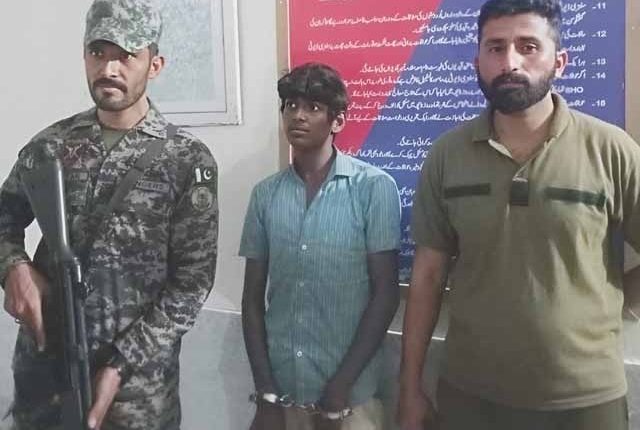 چولستان رینجرز نے رحیم یار خان کے ڈیزرٹ ایریا چاہ گھنیاں والا کے مقام پر گشت کے دوران 18سالہ بپن ولد متلہ کو حراست میں لیا، تلاشی کے دوران اس کی جیب سے 110 انڈین کرنسی نوٹ بھی برآمد ہوئے۔