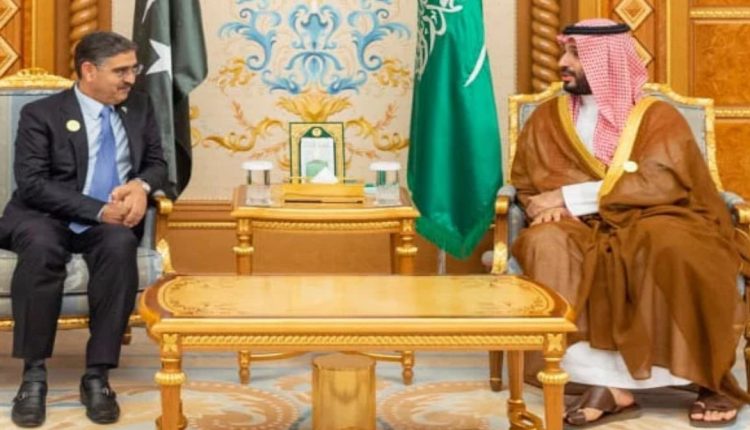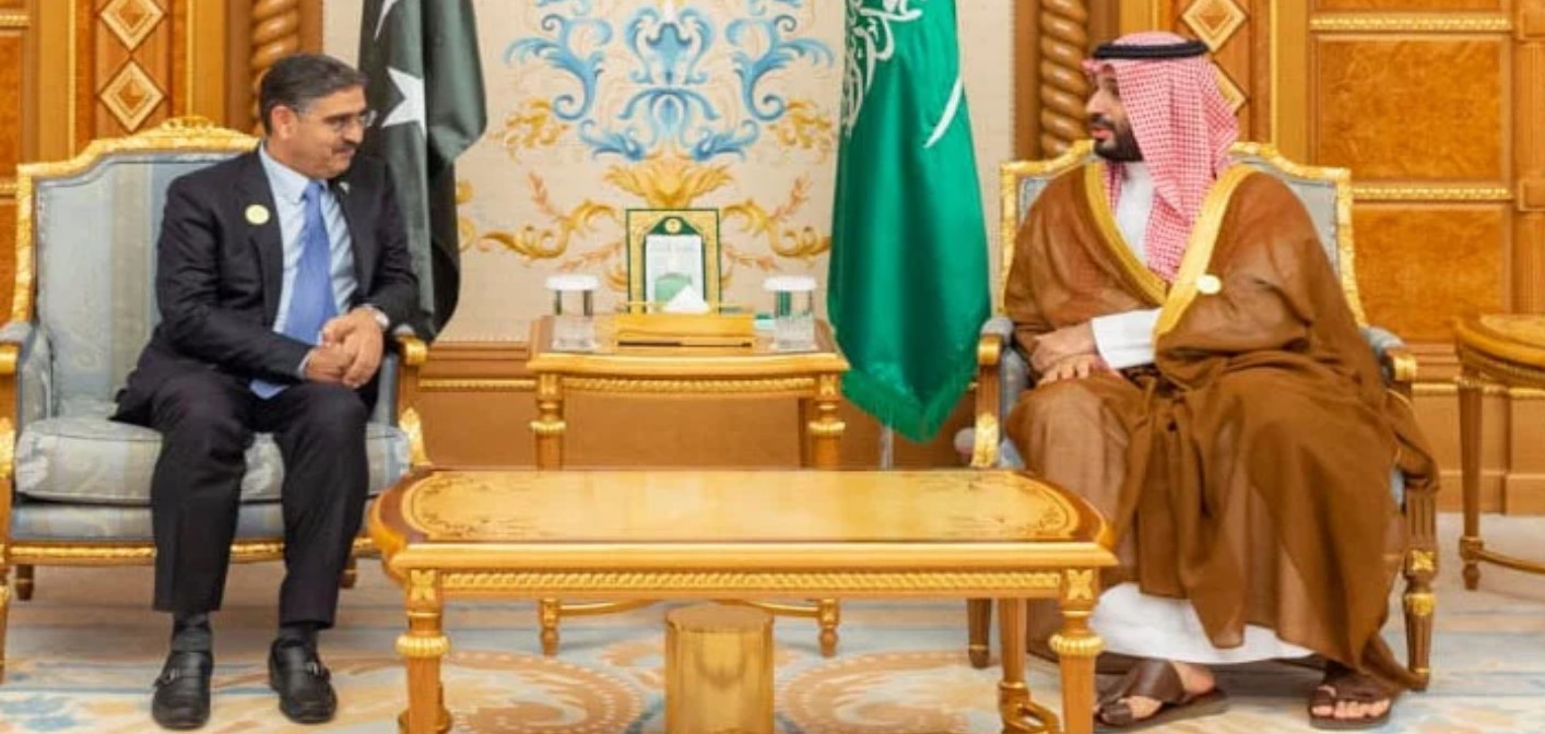 نگران وزیراعظم انوارالحق کاکڑ نے سعودی ولی عہد و وزیراعظم محمد بن سلمان سے ریاض میں ملاقات کی ہے۔